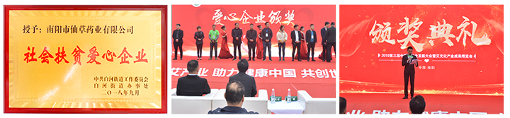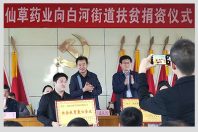 公司為白河街道貧困戶捐助30萬元,做為股金入股企業(yè),年分紅利3萬元,由街道辦事處為貧困戶購買公益性崗位和做為貧困戶收益,為貧困戶提供更加有效的就業(yè)保障。提高貧困戶收入。2018年10月16日舉行隆重的授牌儀式,會上市領導對南陽仙草藥業(yè)有限公司的扶貧工作給予高度贊場和肯定,并鼓勵其他企業(yè)向仙草藥業(yè)學習。